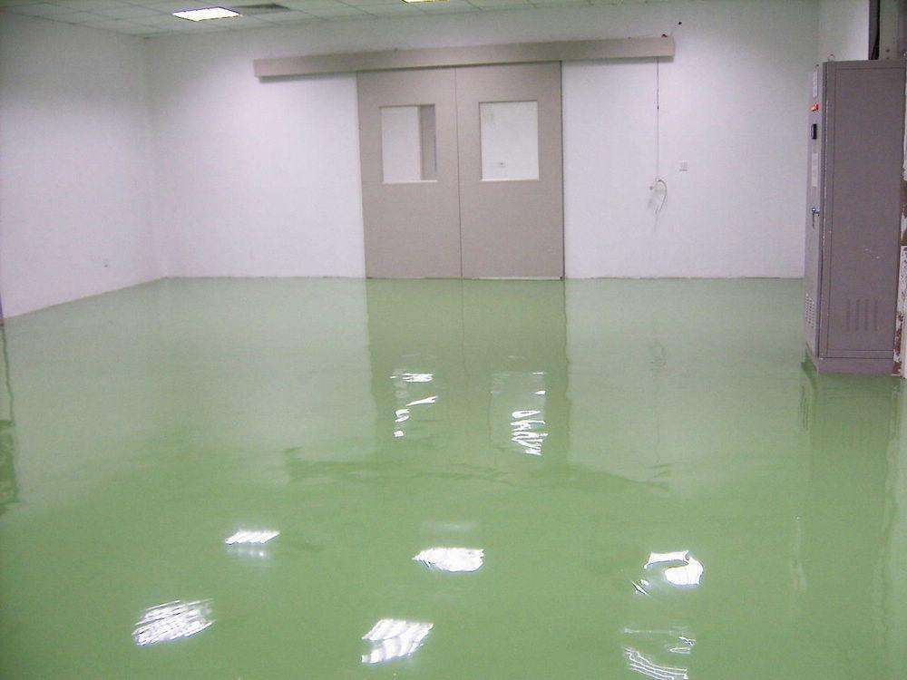 ⑦防静电面漆:防静电自流平面漆一道,其体积/表面电阻平均系数值1X10^6~1X10^9Ω,完工后整体地面光亮洁净,颜色均一,无空鼓;